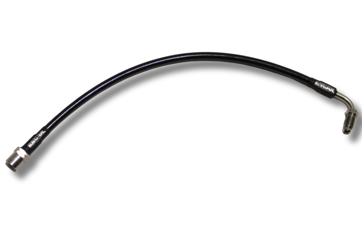 Cette durite est dotée de raccords sertis sur des tuyaux en téflon tressé en acier inoxydable, recouverts d'une gaine protectrice noire. Elles sont résistantes aux chocs, aux hydrocarbures et à l'usure. De très haute qualité, elles remplacent directement la durite en caoutchouc d'origine, améliorant ainsi la sensation de la pédale. Elles sont essentielles pour une conduite sportive ou un usage intensif.