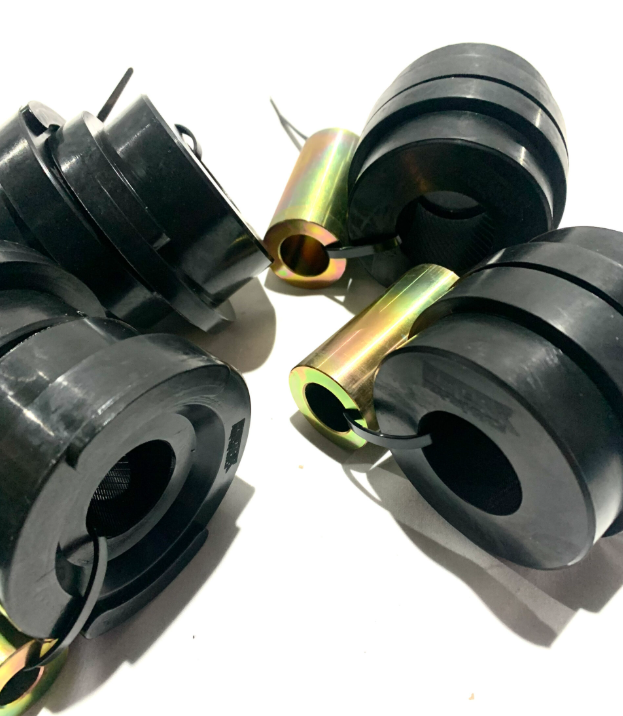 Jeu de 4 silentblocs en 2 parties pour un montage facile.